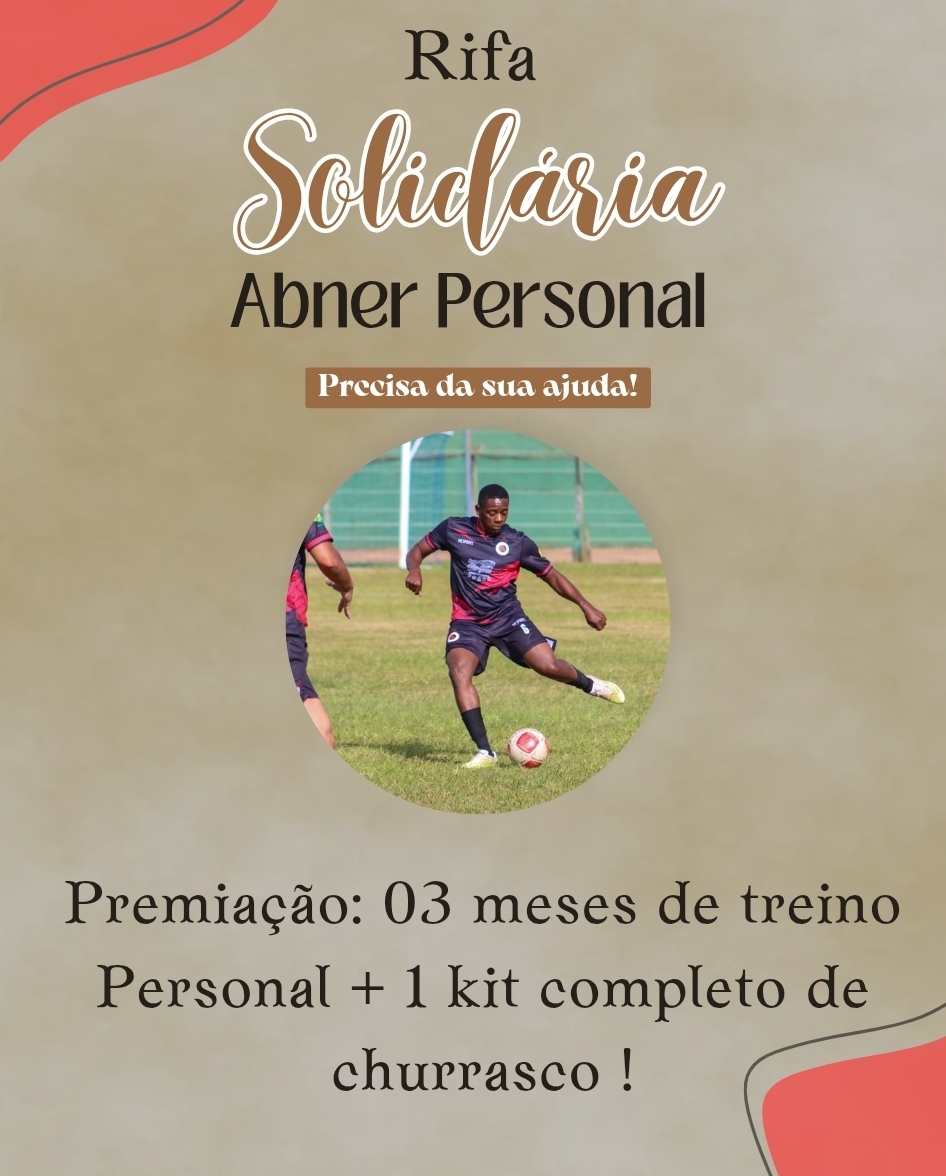 A rifa tem o intuito de levantar um dinheiro para arrumar o nosso carro, que é o meio de trabalhodo abner. infelizmente enfrentamos uma enchente no dia 31/12/2025 em caraguatatuba e o carro entrou água no motor. vamos ter que refazer o motor todo da montana. contamos com a sua ajuda meus amigos e familiares !!!! o prêmio é 03 meses de treino personalizado, 02 x na semana + 1 kit de churrasco completo (1 picanha, 1 pct de linguiça, 2 pct pão de alho, 1 carvão e 1 cx de cerveja). compartilhe com todos e nos ajude !!!