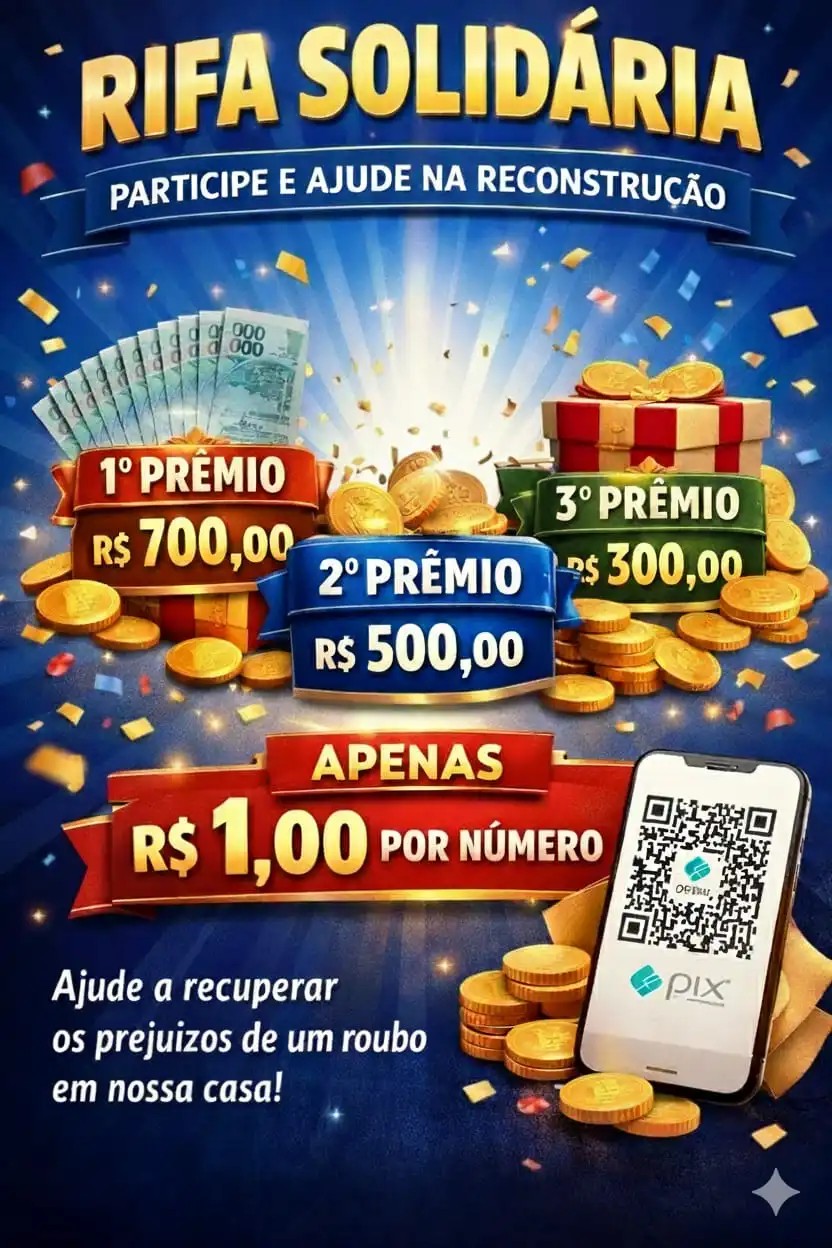 Esta rifa está sendo realizada para ajudar a cobrir os prejuízos causados por um furto em minha residência.além do furto de diversos itens, houve uso indevido do cartão de crédito furtado, cujas compras foram contestadas, mas não reconhecidas pela instituição financeira, ficando o prejuízo sob minha responsabilidade.também foram danificados equipamentos essenciais, como o computador de trabalho, um celular e uma airfryer, além do furto de outros objetos como jogo de facas, fone de ouvido, carregadores e itens que ainda estão sendo identificados.a rifa é uma forma honesta e transparente de amenizar os danos e reconstruir o que foi perdido.
