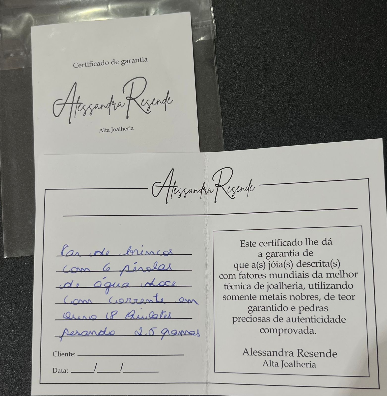 Conjunto de brincos e colar de pérolas com certificado de garantia