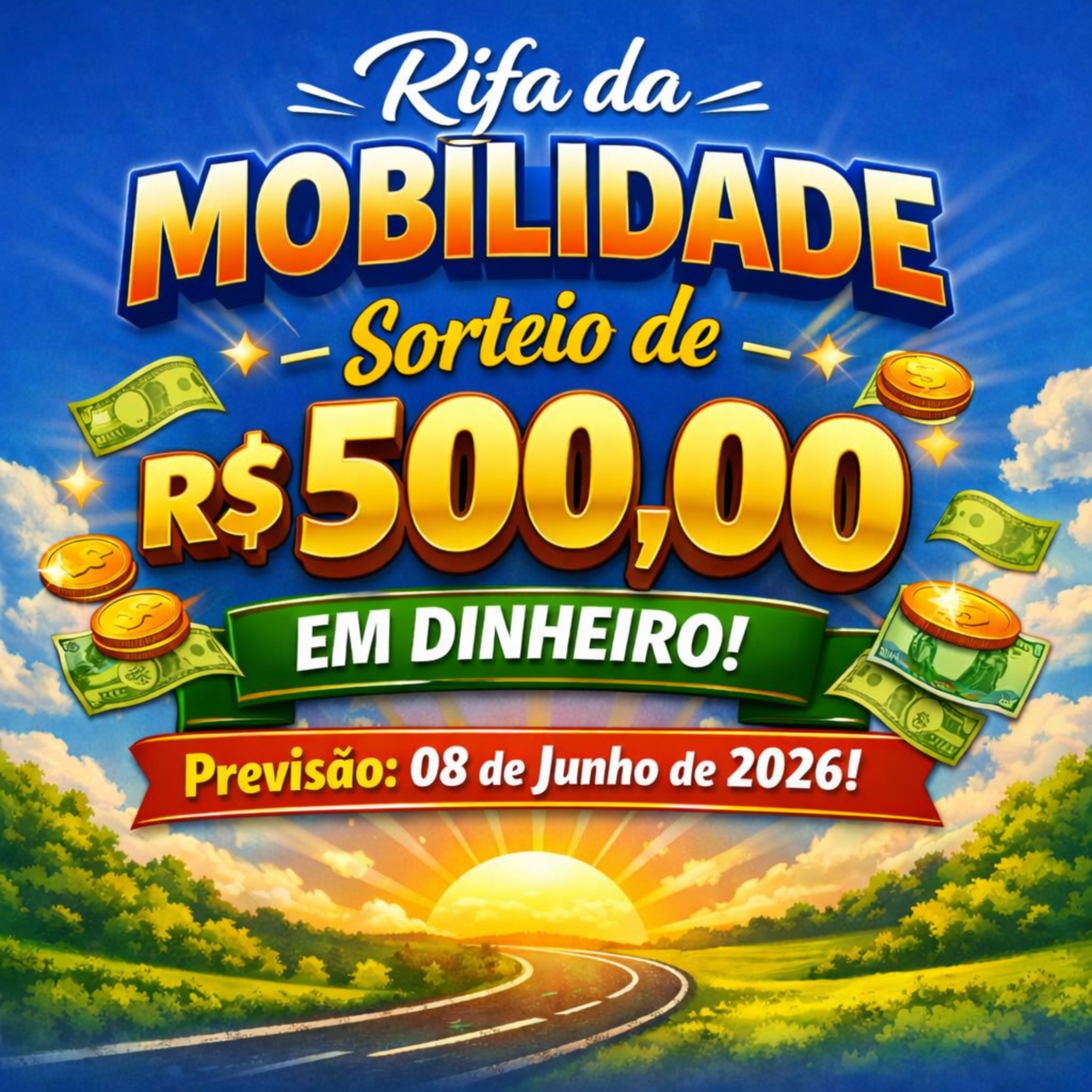 Olá, amigos!estou organizando uma rifa muito especial com o objetivo de adquirir uma scooter elétrica para meu avô. hoje ele ainda depende de uma bicicleta comum para se locomover diariamente, percorrendo vários quilômetros. a scooter será o primeiro passo para facilitar sua mobilidade, trazendo mais conforto, segurança e qualidade de vida no dia a dia.o prêmio da rifa será de r$ 500,00, entregue de forma eletrônica ao vencedor. o sorteio será realizado ao final da venda de todas as cotas, com previsão para o dia 08/06/2026. tudo será feito de maneira totalmente transparente, garantindo confiança e tranquilidade para todos os participantes.conto com a colaboração de cada um para tornar esse sonho realidade. sua participação é uma ajuda valiosa para que meu avô possa continuar ativo e independente, mas com muito mais praticidade. participe e ajude a transformar essa conquista em realidade!