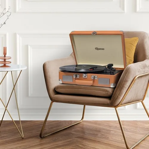 Vitrola Raveo Sonetto Chrome Toca-discos Bt Grava Usb Cor Caramelo