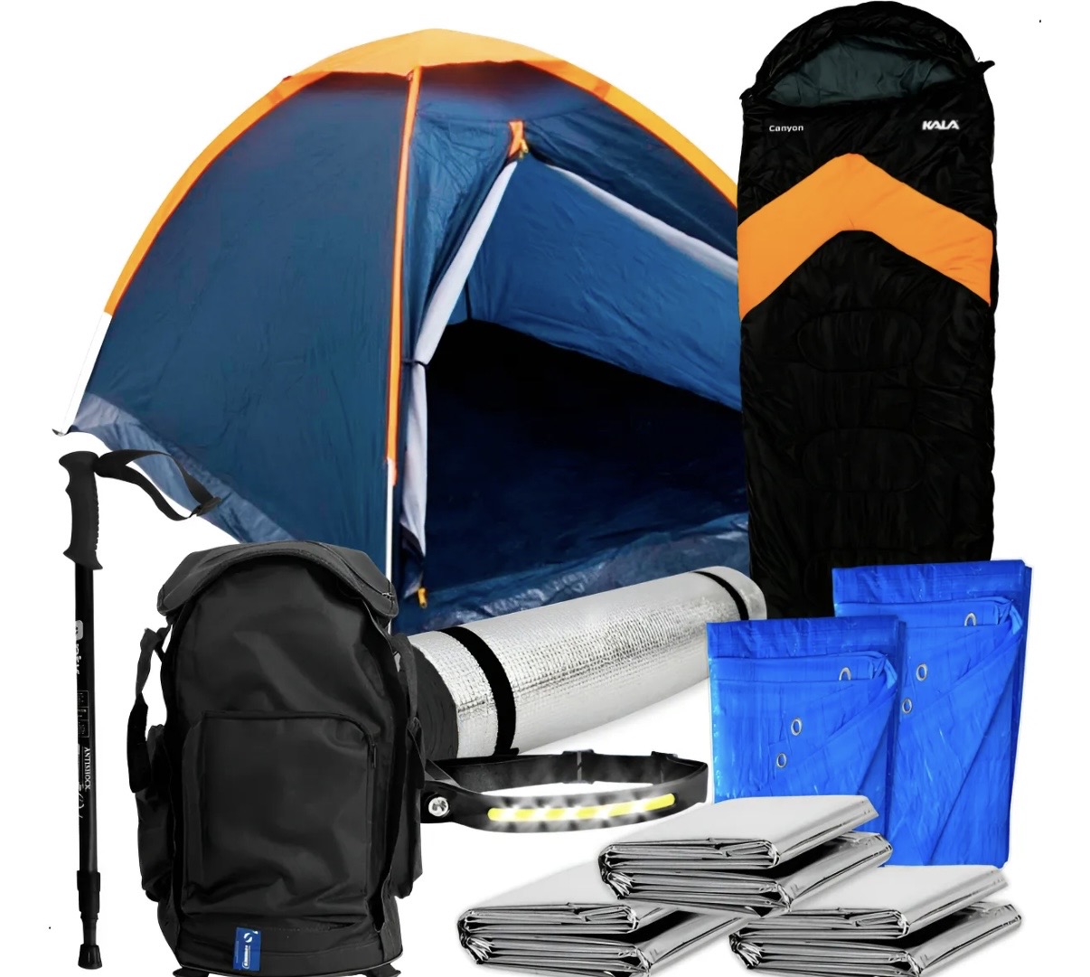 Kit montanha 10 pcs : barraca , mochila 50l , saco de dormir ,lanterna , kit talhares